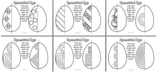 I’ve also got an egg symmetry center from our Spring Library Centers page. This free printable shows half of an egg with a design. The students are challenged to complete the design on the other side of the egg, and to color it with symmetry, too. I know that teachers are working on symmetry in class because they’ve checked out all of our symmetry books!