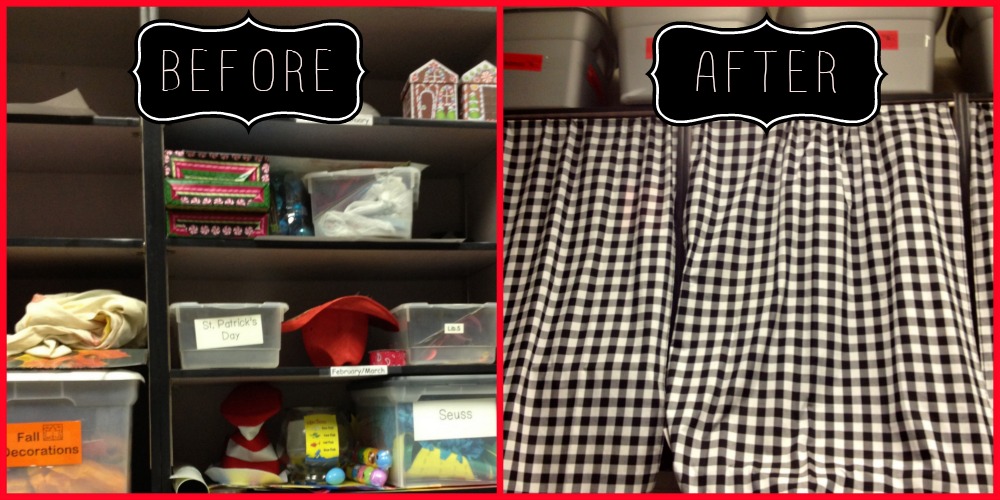 Have you ever made curtains with a glue gun? It’s a quick and easy way to beautify your library storage area!