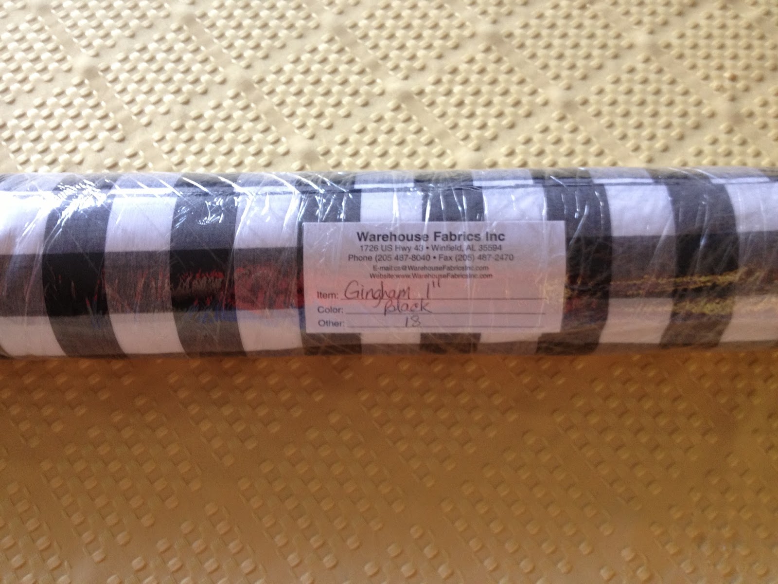 I used one inch black and white gingham because (a) I love gingham, (b) the one-inch grid pattern made measuring and cutting simple, and (c) I think it will match everything. I ordered the fabric from Warehouse Fabrics because they had the best price per yard at $3.49.