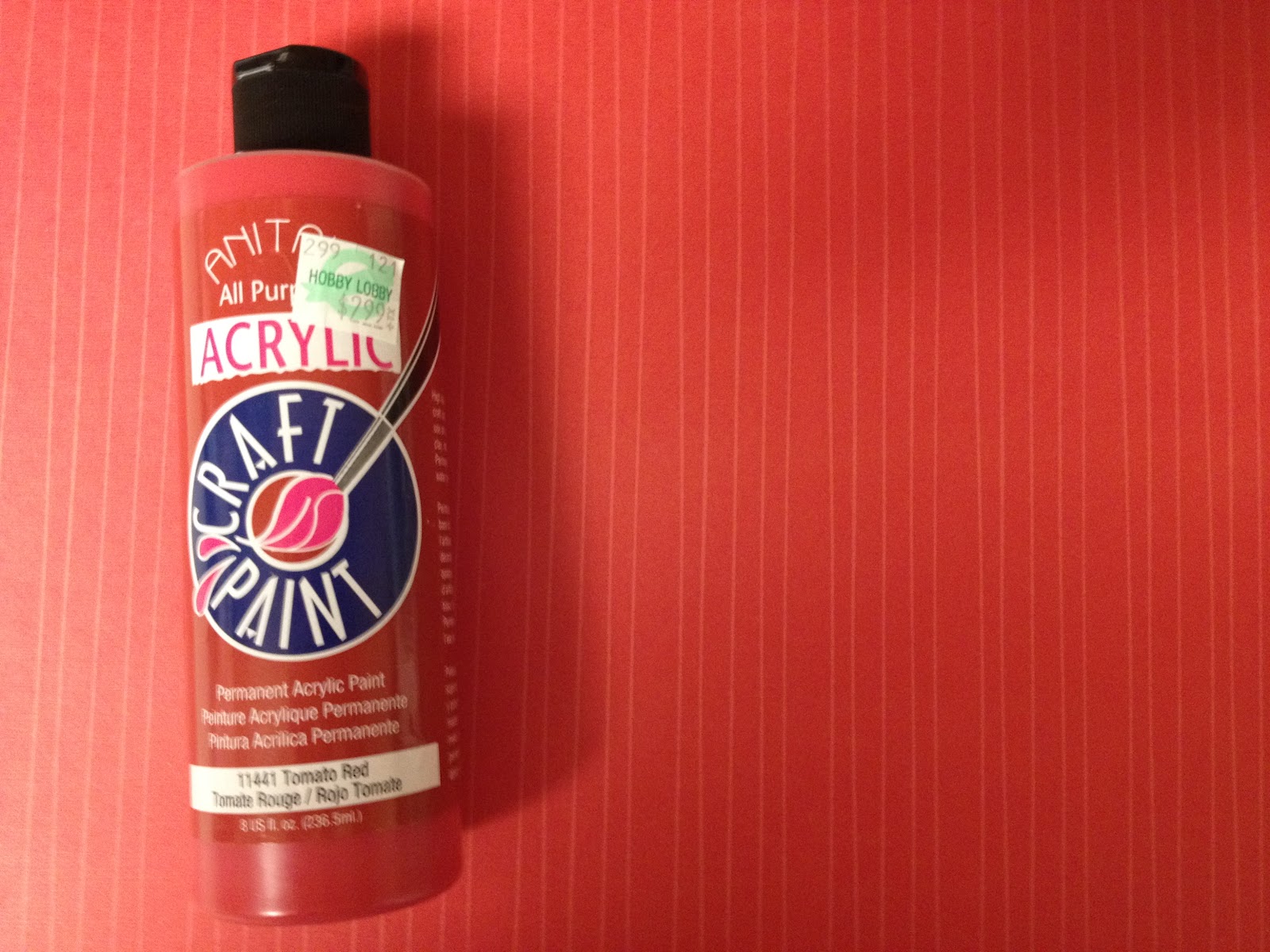 I use a solid color from this pack of scrapbook paper for the color that I will paint the paint stirrers all over. This year I chose a bright red, and found a big bottle of tomato red paint for $2.99.
